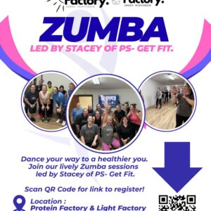 Dance your way to a healthier you! Join us for Zumba at Protein Factory, class led by Stacey of PS- Get Fit, and designed for ALL LEVELS! Everyone welcome. Sign up at the link, or stop in/call Protein Factory at 715-492-6296 https://boards.com/a/BtVrHB.bE2x7T