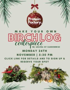Make your own Holiday Birch Log centerpiece while enjoying a healthy drink at Protein Factory while you create! See details at our link! https://boards.com/a/BtVrHB.cQXPOr